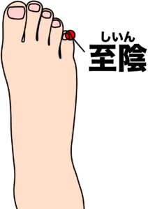 - 至陰(しいん):足の小指の爪の外側にあります。子宮の収縮を促し、胎動を活発にする「逆子の特効穴」です。